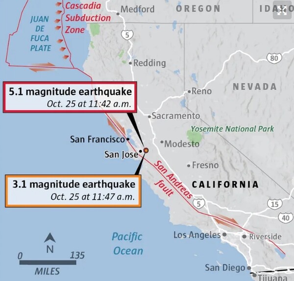 임미나 특파원 = 미 지질조사국(USGS)은 14일 오전 10시 8분께(현지시간) 미국 캘리포니아주 샌디에이고 카운티 내륙 지역 줄리언의 남쪽 4㎞ 지점에서 규모 5.2의 지진이 발생했다고 밝혔다. 진앙은 북위 33.043도, 서경 116.595도이며, 진원의 깊이는 13.4㎞다. 이 지진과 관련해 쓰나미 경보는 발령되지.