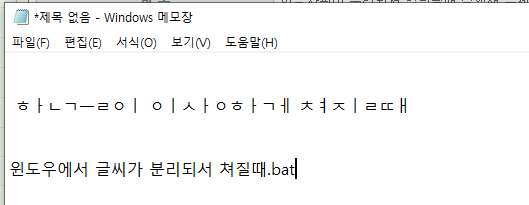 윈도우에서 한글자판이 분리되서 입력될때 실행해주세요.