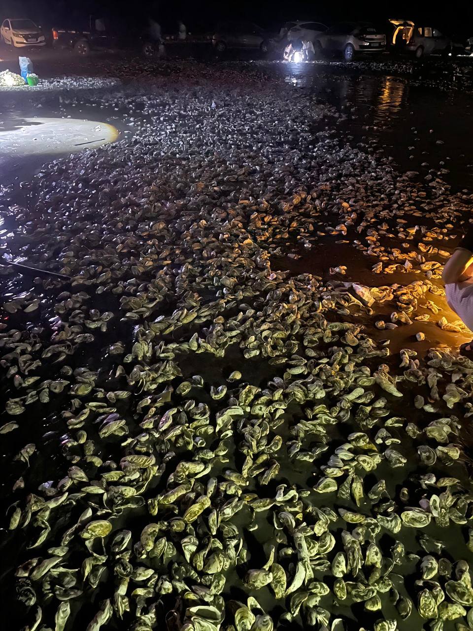 5월 30일, 중국 광둥성 산웨이 지역 해변에서 발생한 태풍으로 인해 해변에 많은 굴이 떠밀려왔습니다. 이 귀중한 자연 자산을 탐내는 사람들이 굴을 주우러 이곳을 찾았으며, 그 중 한 사진 작가는 이 자연 현상을 담기 위해 200파운드의 거대한 굴을 주웠다고 말했습니다.