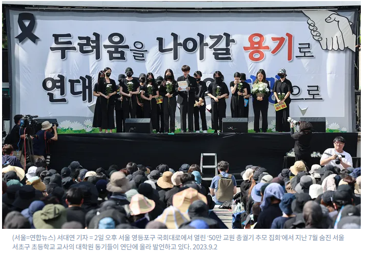 지난 9월 4일 서울 서초구 초등학교에서 극단적 선택을 한 서이초선생님의 49재날 전국 교사들의 7차집회가 있었다.
